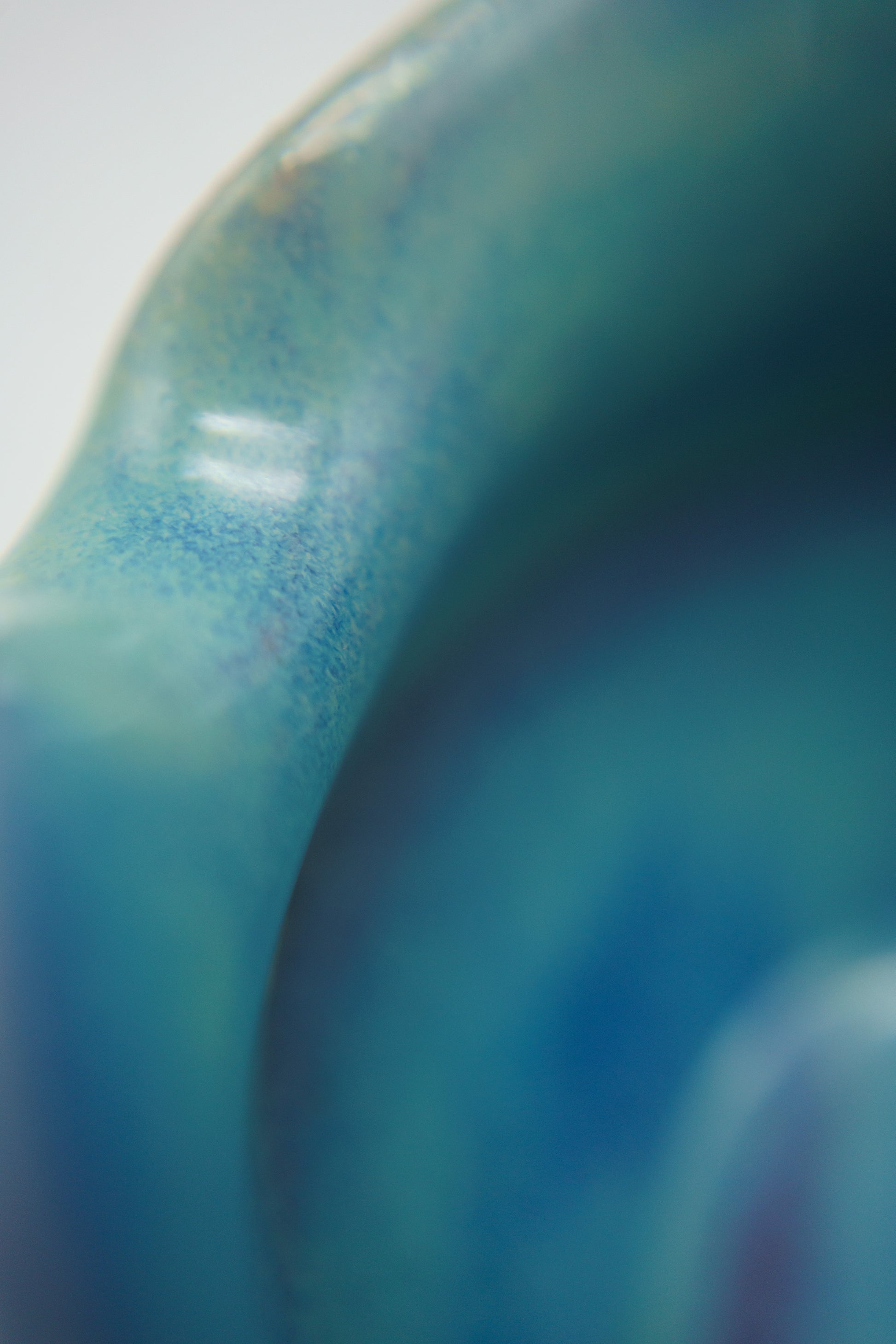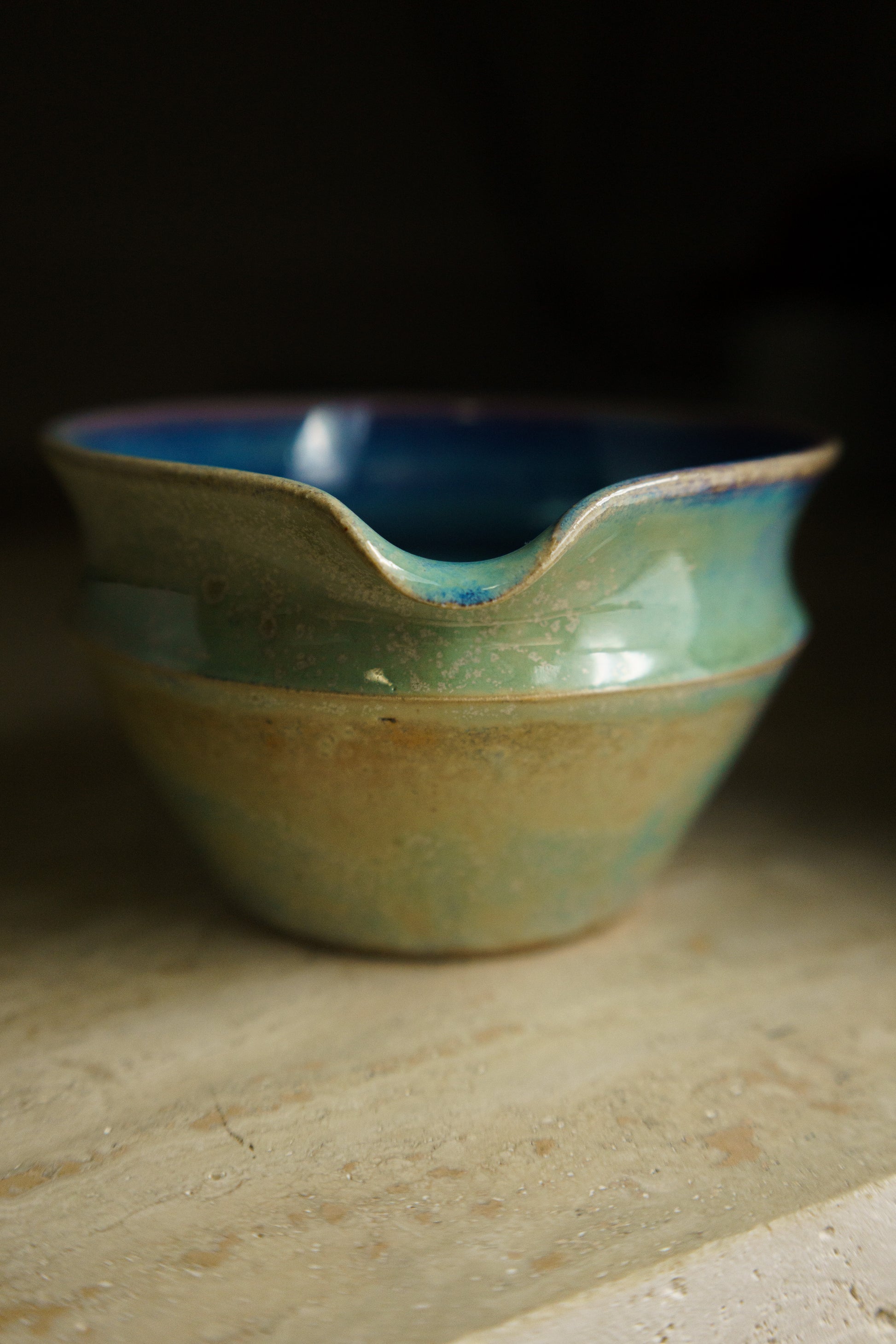 Matcha by the ocean? This particular glaze evokes imagery of dreamy ocean waves on the inside and coral reefs on the outside.