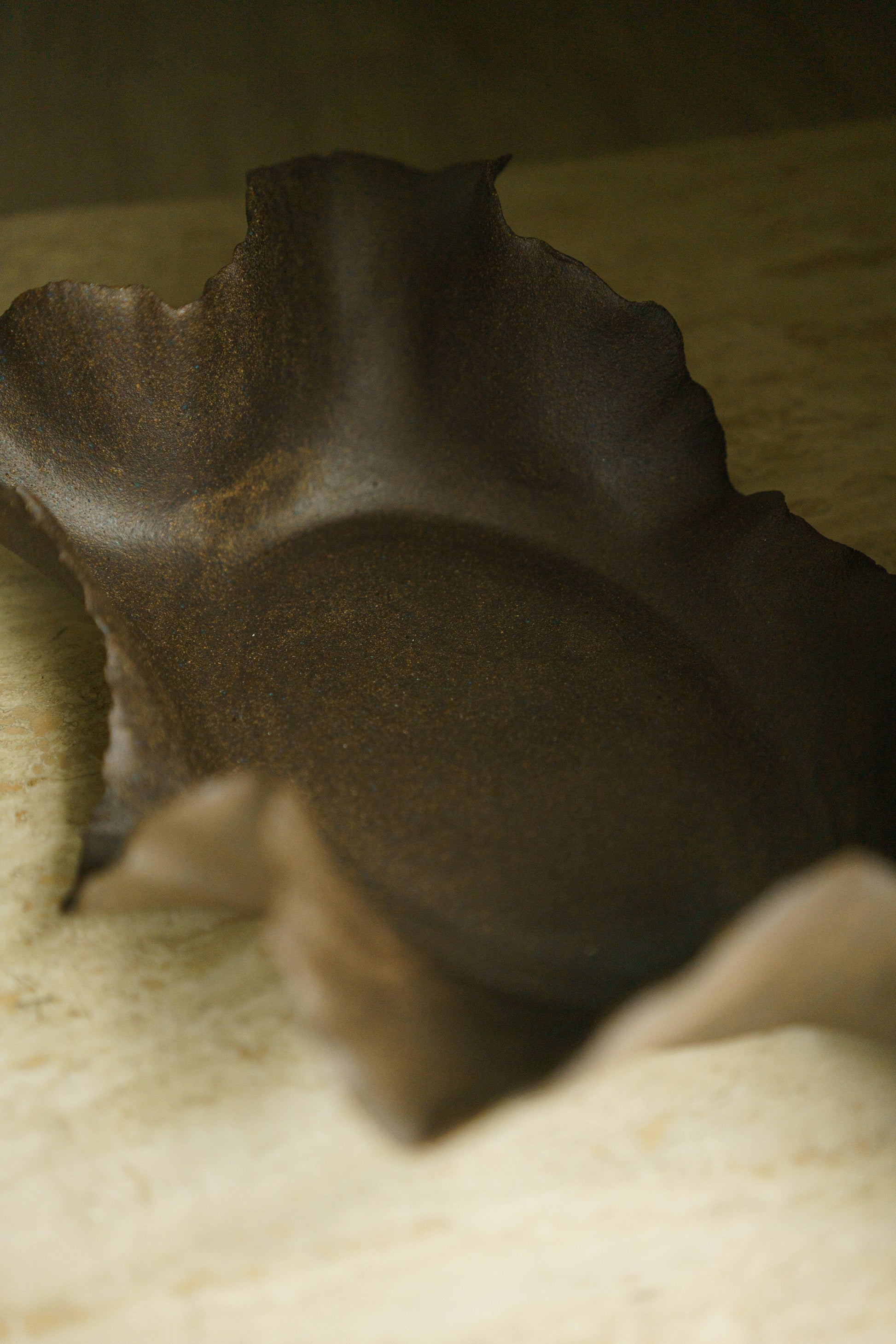 Perfect as a statement piece, with dramatic waves and ruffles frozen in clay.