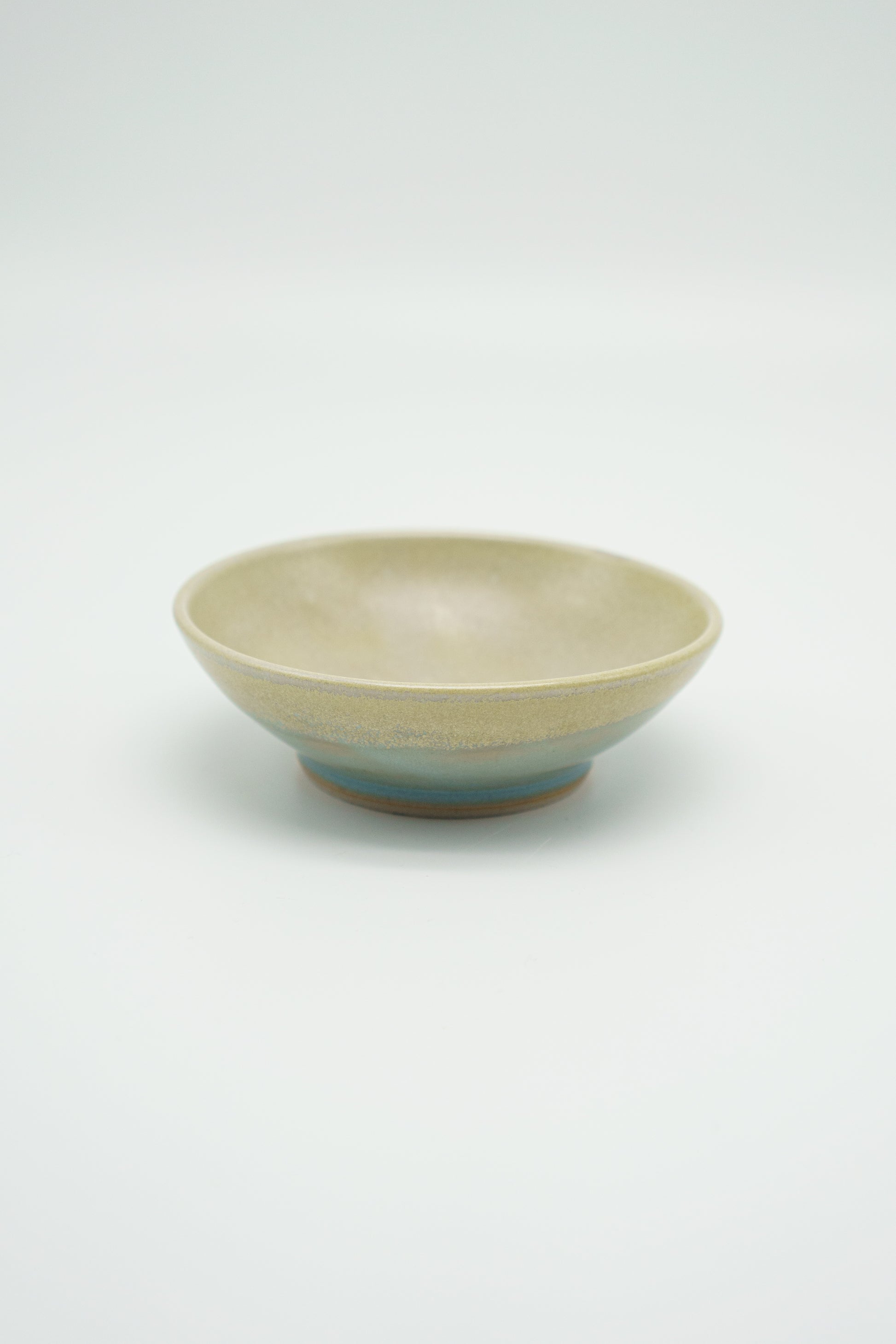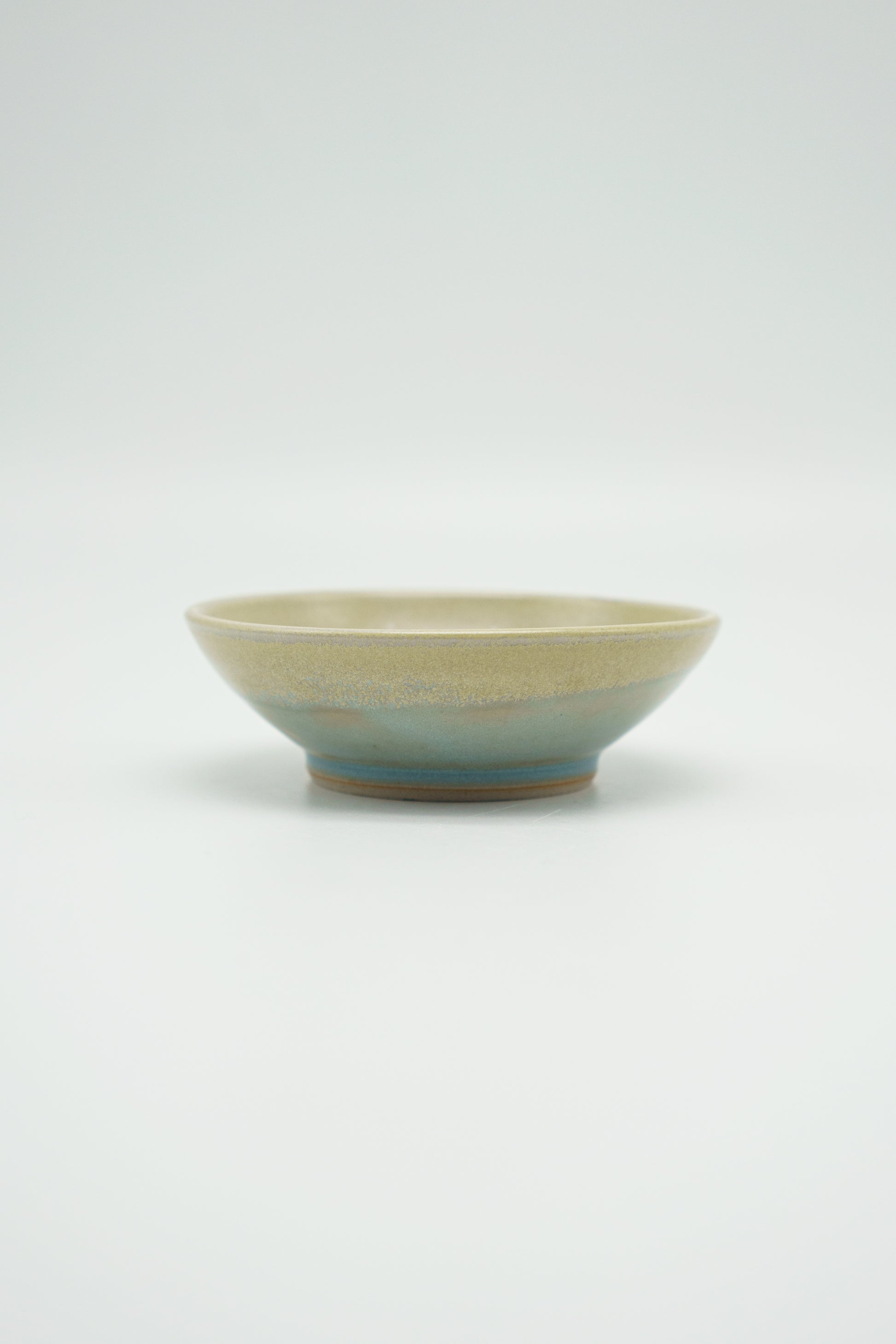 A small delicate bowl in a complex icy crackle blue glaze, perfect for serving appetizers or banchan.